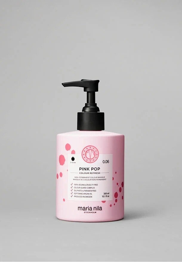 Le masque nourrissant doux repigmentant et non permanent Maria Nila Coulour Refresh Pink Pop donne à vos cheveux une teinte enjouée provisoirement et les laisse merveilleusement brillants et doux.